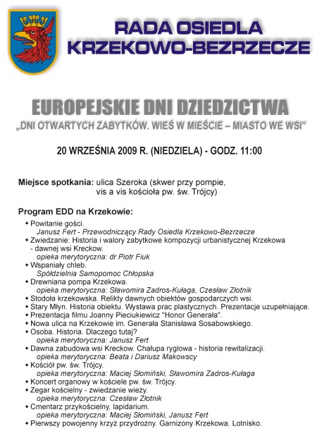 Europejskie Dni Dziedzictwa 2009 na Krzekowie - 20 września, godz. 11:00